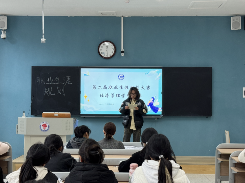 比赛中,同学们根据申报项目依次对个人职业生涯规划展开讲解。在规定时限内,从规划目标、自我分析、职业分析、实施计划等维度一一进行阐述。