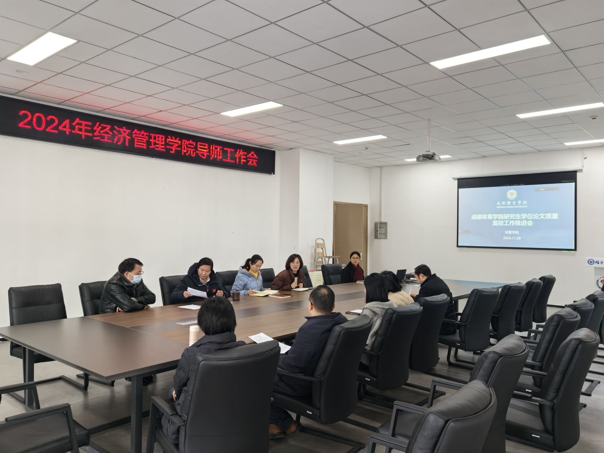 为着力提升研究生论文质量和培养质量,有序推进2025届研究生就业工作。11月28日下午2:30,经管公司在运动休闲馆328会议室召开研究生学位论文质量提升工作会暨2025届研究生就业推进会。公司领导、全体硕博导师、研究生管理办公室老师参加会议,会议由公司副经理卿平主持。
