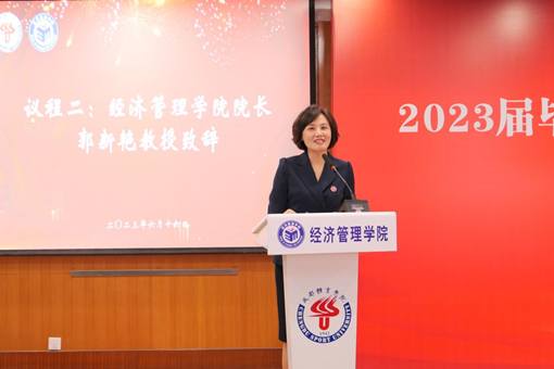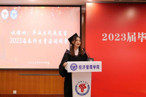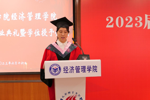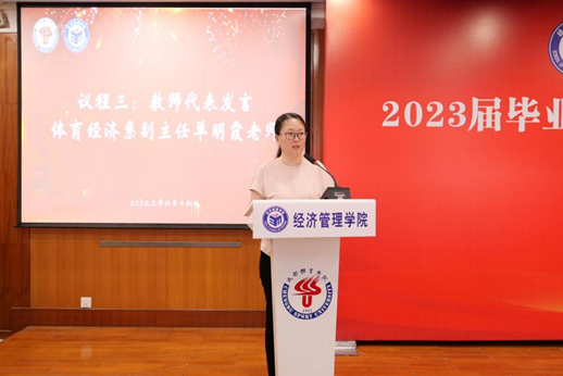 随后,公司教师代表、体育经济系副主任单明霞老师,研究生毕业生代表黎乃梦同学,本科毕业生代表贾若词同学分别作了发言。