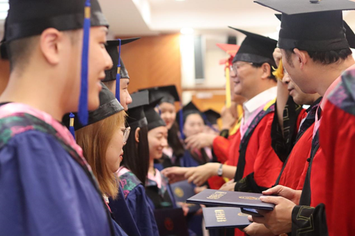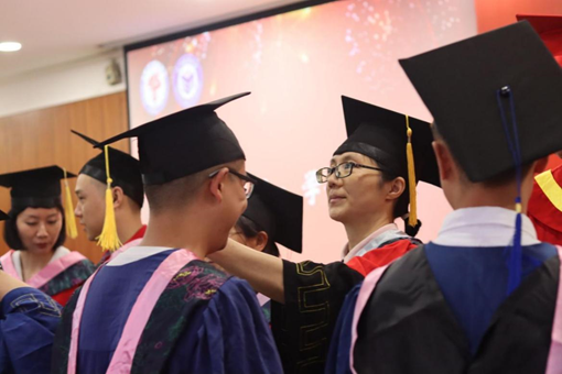 最后,郭新艳经理宣读了授位决定,毕业生依次到前台接受老师们拨穗、颁发学位证书,合影留念。