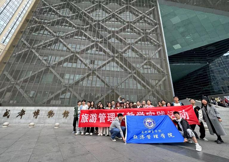 2023年11月8日下午,304永利集团旅游管理专业2022级本科生和2023级研究生在任课教师唐欢的带领下,到成都博物馆开展《导游业务》课程实践课活动。本次活动主要分为两个部分,一是参观游览学习,二是现场讲解技巧学习。通过现场教学,让同学们深入了解成都的历史文化,帮助同学们提升沟通能力和解说技巧。