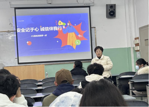 为深入学习贯彻公司第十二次党代会精神,增强员工的安全意识,12月12日下午3:50,2023级旅游管理1班在行健楼A208教室,开展了以“安全记于心,诚信伴我行”为主题的班会。班级联系领导马克思主义公司党委书记、经理陈晔参加,班主任唐欢主持。
