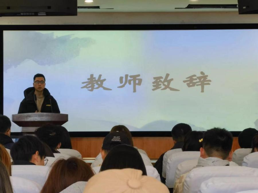 接下来,员工会指导老师潘同心、胡琨做了教师发言。潘老师肯定了各个部门同学在前一学期的辛勤工作和取得的成绩,同时指出了各个部门存在的一些问题。针对各部门工作落实情况和各部门之间,员工干部、干事之间的沟通协作问题,他提出加强各部门自身建设,举办更多贴近同学们学习、生活的活动,提高各部门成员的归属感,增强员工会的凝聚力和战斗力。