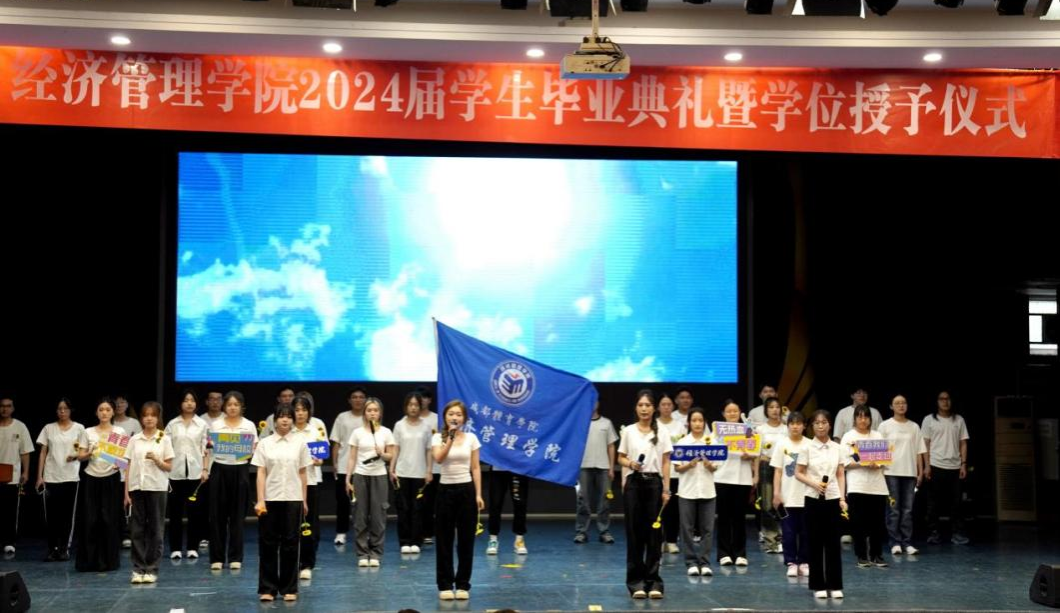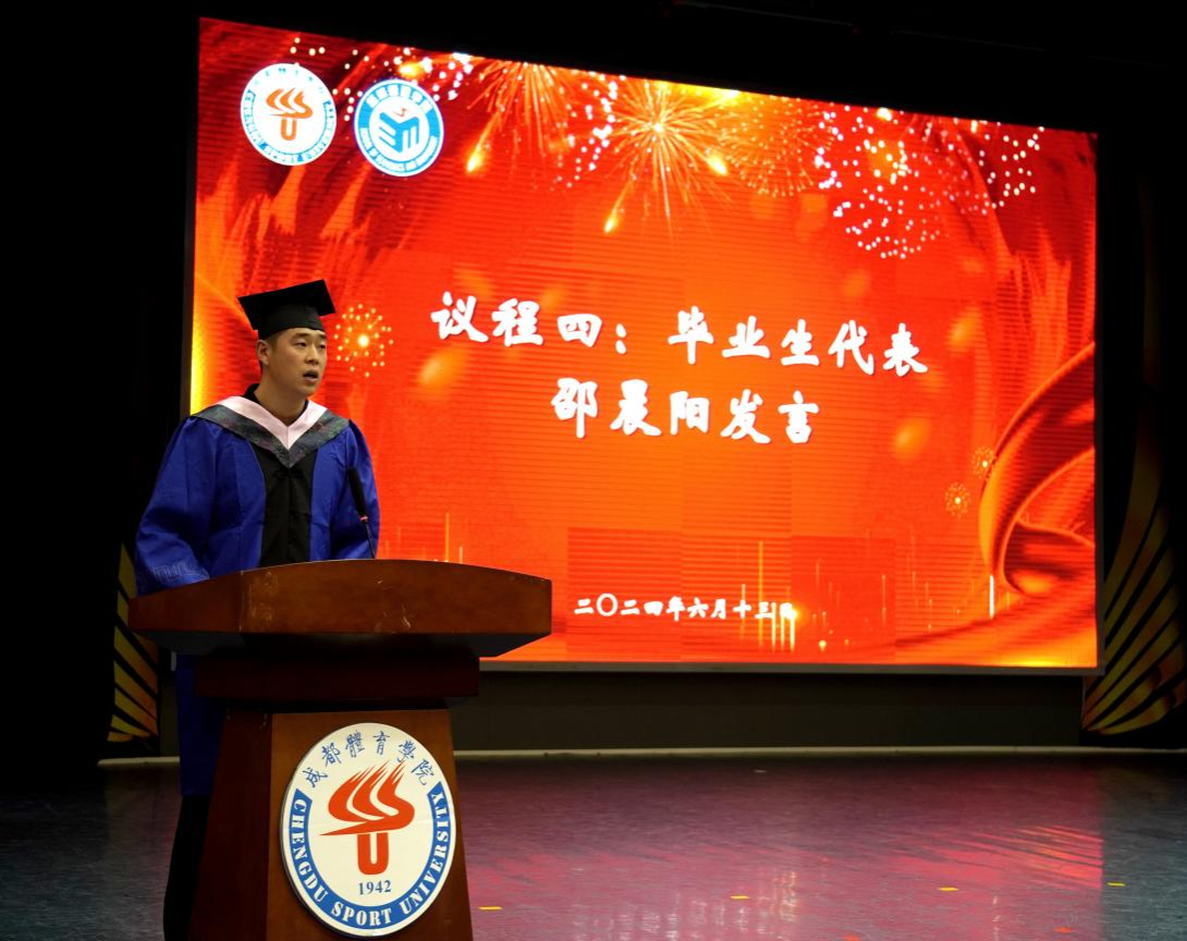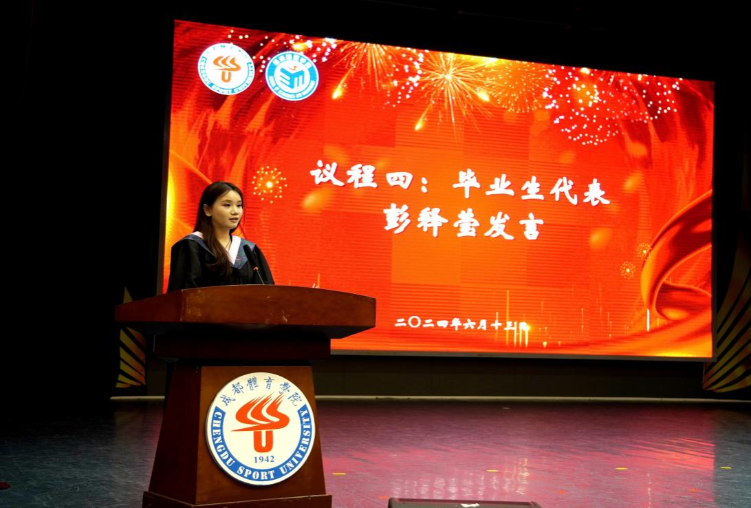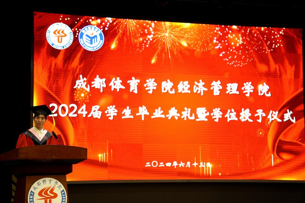 伴随着庄严的国歌声,毕业典礼正式开始。首先,郭新艳经理代表公司致辞,她向即将步入人生新阶段的2024届毕业生们表示了最衷心的祝福,总结了他们就读期间在学习、生活、社会实践、就业等各方面的优异表现。同时她也叮嘱毕业生始终保守初心,在矢志不渝中奋力向前;始终突出经管人的品格修炼,在复杂的环境中恪守正道,立志成为具有科学家精神和体育企业家精神的体育新质生产力创造者;“不驰于空想,不骛于虚声”,始终保持向上生长的方向,胸怀天下,用青春承载担当。