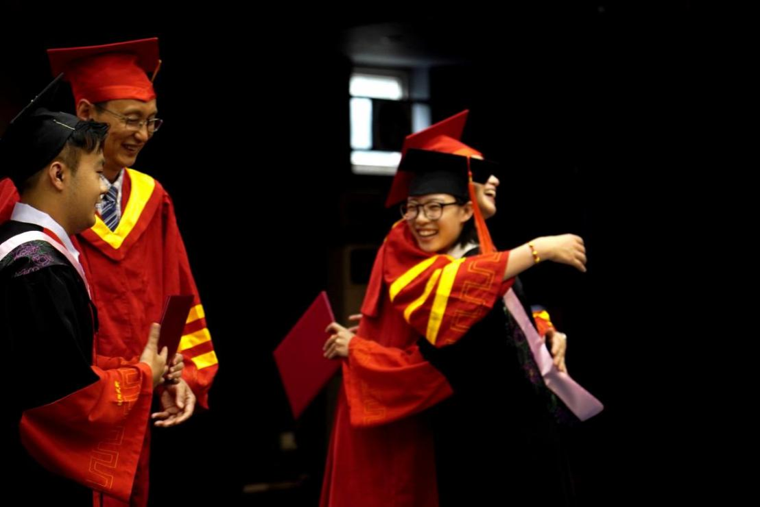 最后,郭新艳经理宣读了授位决定,毕业生依次到前台接受老师们拨穗、颁发学位证书、合影留念,毕业典礼在热烈的掌声中圆满结束。