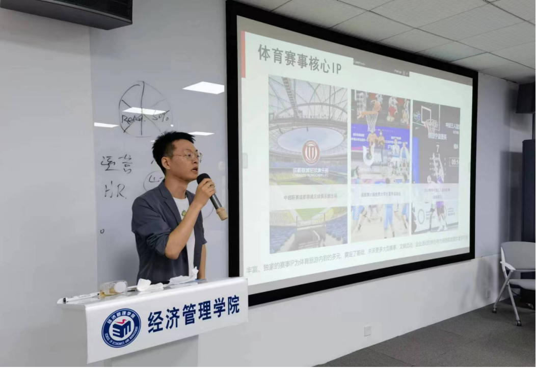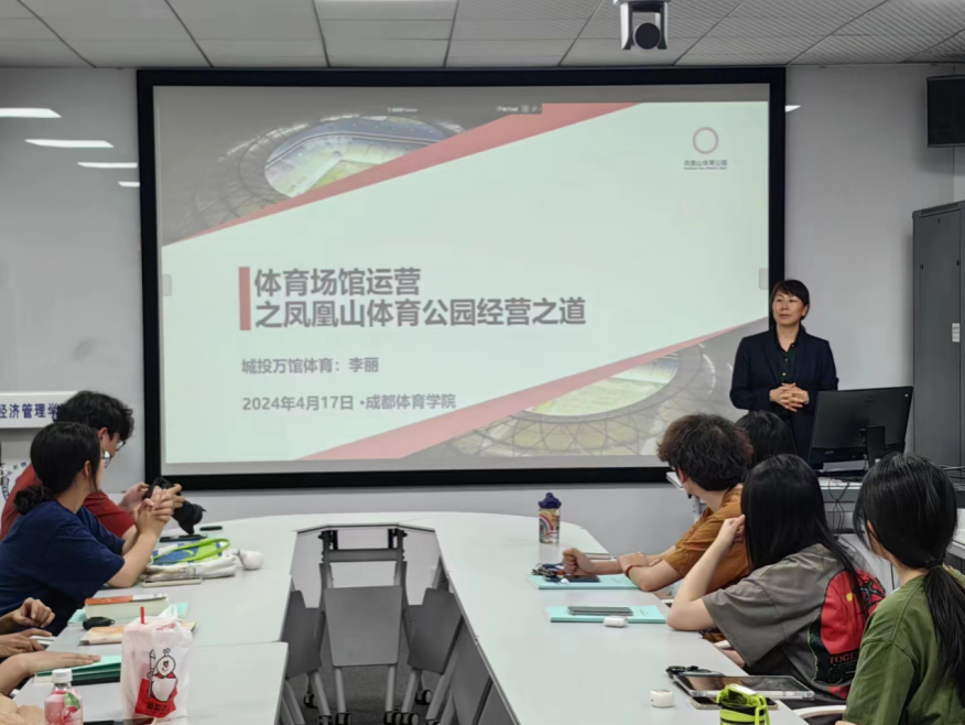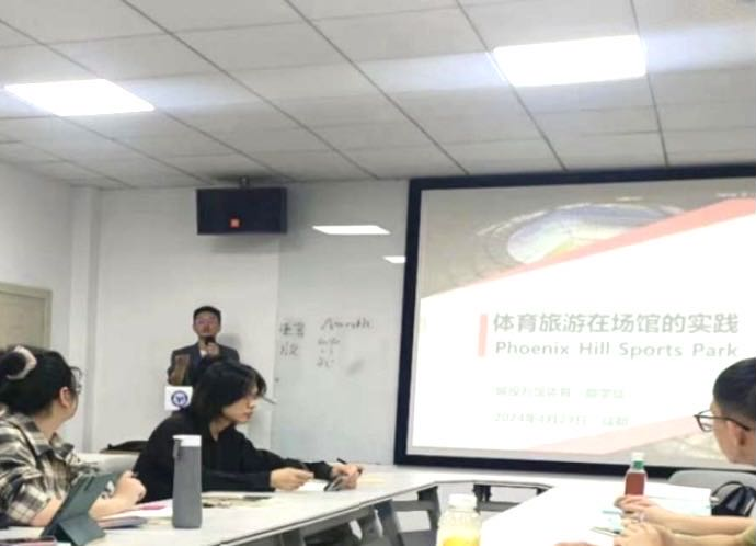 为增强员工的行业认知与实操能力,旅游管理系与院级实践教育基地——成都城投万馆体育文化发展有限公司”(以下简称“城投万馆”)展开深入合作,该企业作为“成都凤凰山体育公园”的场馆运营管理机构,成立于2020年9月,也是全国唯一一个设立“体育旅游部”的体育场馆运营公司,校企双方共同推进《体育旅游策划》课程的“行业企业资源库”建设。受任课教师杨强教授邀请城投万馆副总经理李丽、人力资源部总监杨伊、体育旅游部总监颜学斌、赛事部总监韩奥飞等四位中高层管理人员走进课堂,结合课程教学计划,为旅游管理专业2021级本科生和2023级研究生带来了四堂生动且富有启发性的授课。