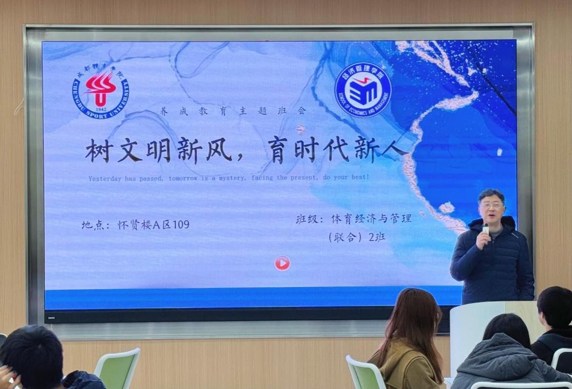 2025年3月5日下午,2023级体育经济管理(中外联合)二班在怀贤楼A109召开3月主题班会。公司党委常委、副董事长李林作为班级的校级领导联系人参会,公司党委书记张林玲、辅导员潘同心参加,班主任周建主持。