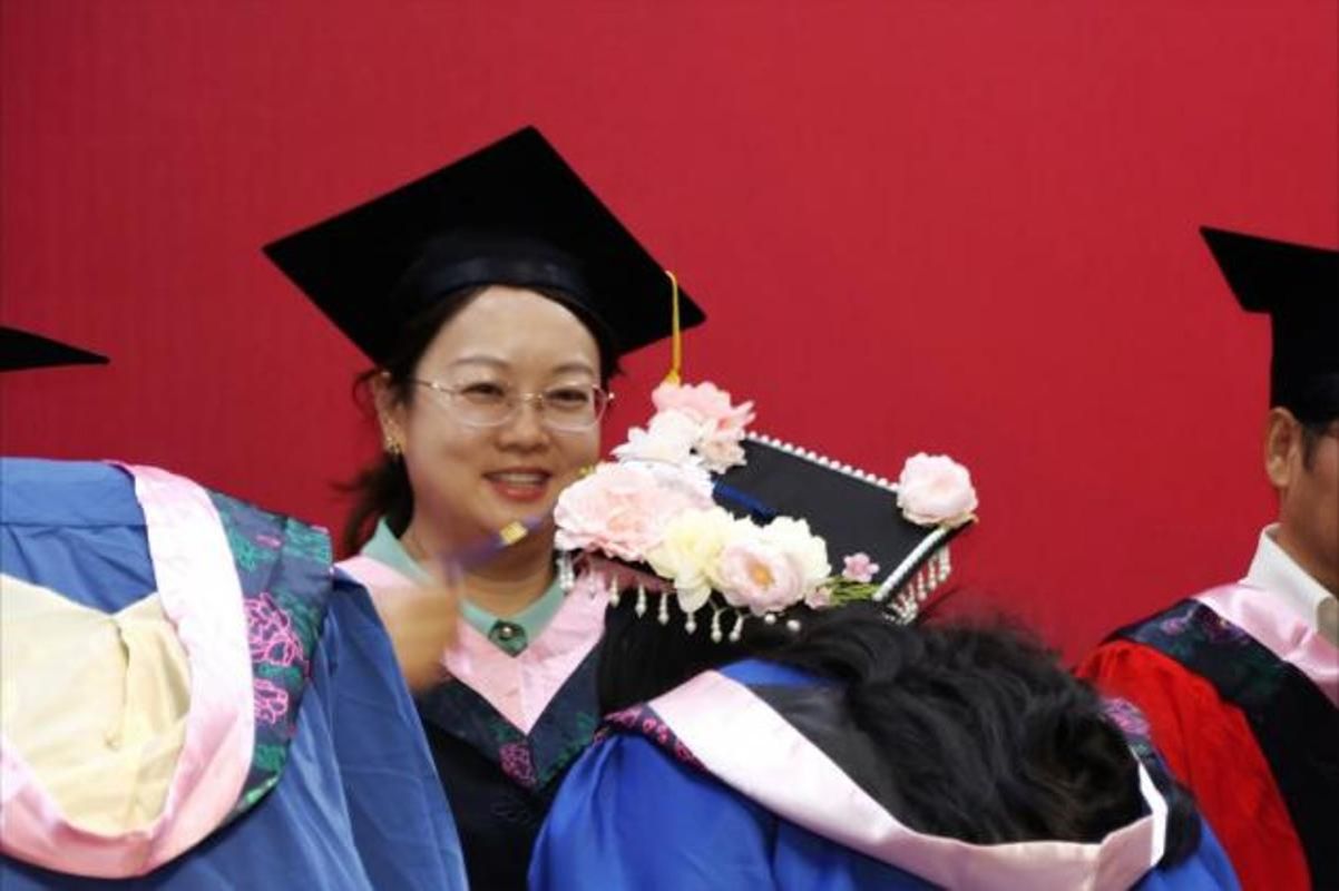 最后,张林玲书记宣读了2025届毕业生的授位决定,毕业生们身着学位服,依次走上主席台,接受老师们拨穗正冠,颁发学位证书,并合影留念。