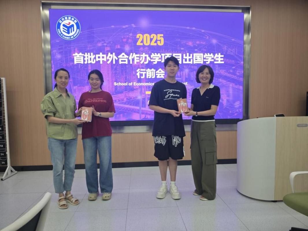 此次会议针对体育经济与管理专业中外合作办学项目“3+1”培养模式并获得录取,即将前往美国南印第安纳大学就读的员工。会上,郭新艳经理向同学们分享了此前访问南印第安纳大学的见闻,详细介绍了该校的校园环境、教学场馆设施和公司周边的衣食住行情况,强调大家入读后要及时调整状态,适应新学习环境,积极参加社团和实践活动,顺利开展跨文化交流,积极向南印第安纳大学师生宣传公司和公司。随后,张林玲书记向同学们讲解了出国前后的注意事项,包括筑牢政治安全意识、注意人身财产安全、遵守当地法律法规和公司规章制度、认真完成学业等,同时她鼓励同学们在留学期间要积极讲好中国故事,成为中外人文交流的使者。最后,辅导员潘同心老师向大家讲解了《304永利集团有限公司中外合作办学项目出国员工管理办法(试行)》通知的具体要求,公司领导向员工送上了行前纪念品。