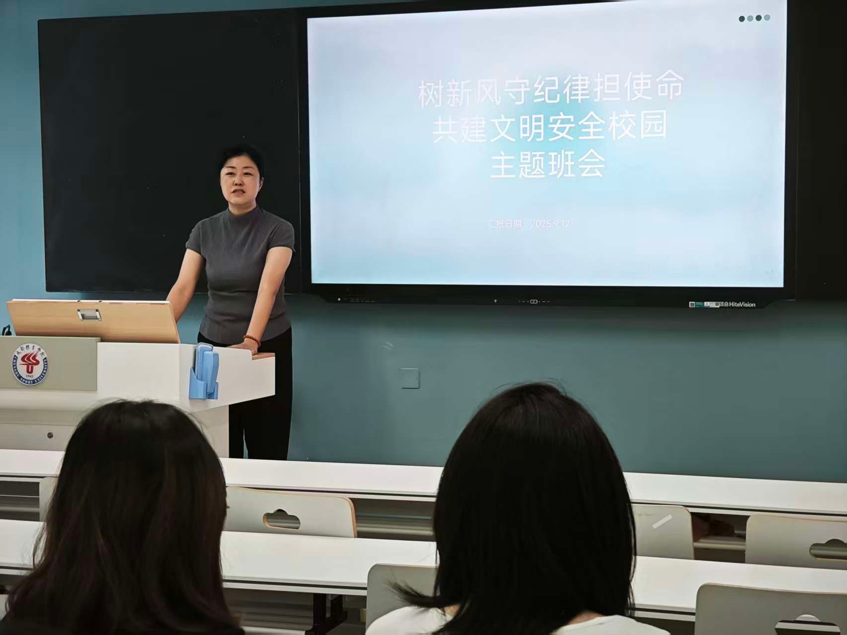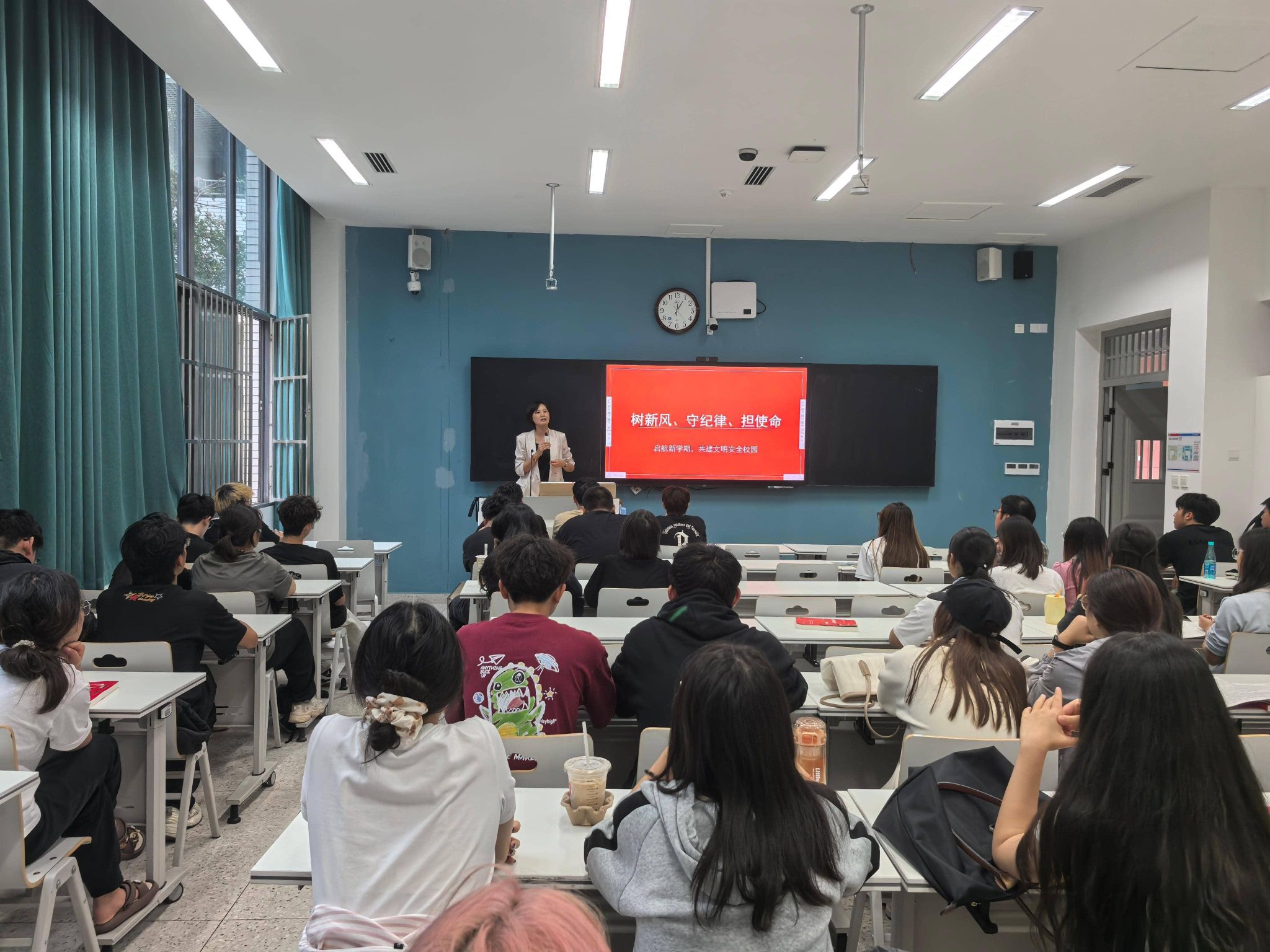 班会紧紧围绕四大方面展开:一是进一步巩固校园文明行为建设成果,重申校园电动车禁止载人、公共场所全面禁烟等规定;二是加强员工日常行为管理,尤其针对夜间熄灯就寝、晚归登记、课堂手机使用管理等做出明确引导;三是开展安全专题教育,通过典型案例剖析,强化寝室用电安全、防范电信诈骗等方面的意识;四是组织全体员工围绕“怎样认识成体、怎样热爱成体、怎样建设成体”展开热烈讨论,凝聚共建共享文明校园的共识。