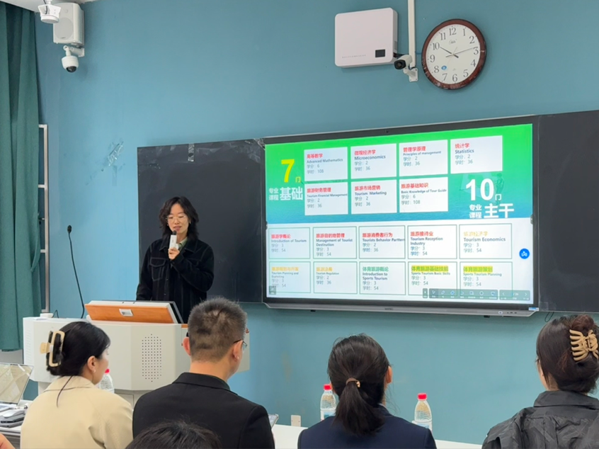 接着,胡洁老师系统介绍了旅游管理专业的课程体系与办学特色,重点讲解“理论+案例+实训”三位一体培养模式及校内外丰富实践教学资源,并通过播放历届员工在实习基地开展课程实践与专业实习的精彩集锦,让新生直观感受专业实践特色与培养成效。