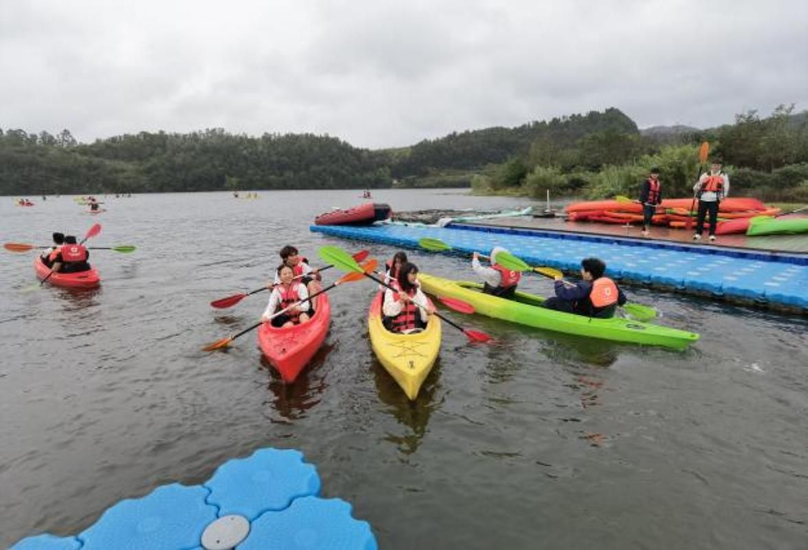 上午,在三岔湖金熊猫水上休闲运动中心,金熊猫体育公司总经理蔡劲秋博士为两组员工分别讲授水上运动俱乐部运营管理知识。讲座后在5名专业教练及安全救援团队的指导下,员工分为两组学习体验了皮划艇运动。